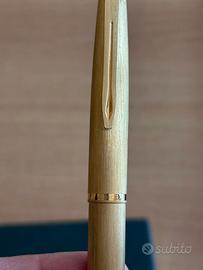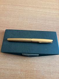 Eccezionale penna stilografica vintage da collezione Aurora 98 in metallo dorato con elegante motivo satinato. Custodia originale in ottimo stato. Condizioni eccellenti (non è presente la cartuccia di inchiostro). Dimensioni: diametro 1 cm, lunghezza 13,5 cm