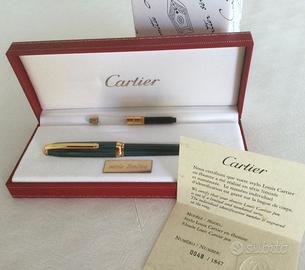 Penna stilografica Cartier in ebonite, mai usata, edizione limitata, pennino in oro 18 k, completa di documenti e scatole originali