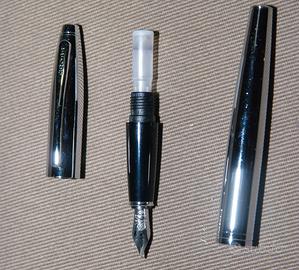 Stilografica Cross in acciaio, pennino sempre in acciaio misura M, carica a cartucce o converter, a me sembra nuova mai usata , astuccio purtroppo assente.