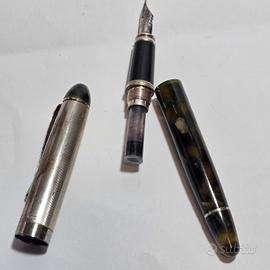 Penna stilografica Delta con tappo in argento 925 (forse modello Luxus). Verde marmorizzato.