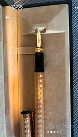 Penna stilografica DuPont placcata oro con pennino d'oro. Penna da collezione, perfetta come regalo , in stato di conservazione eccellente. Da notare che sulla astina c'è una dedica: noi dell' 88. Nella sua custodia originale provvista di cartucce