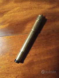 Penna stilografica e portamine anni 20 laminati oro completi ma da restaurare. il portamine ( lunghezza cm 11) ha semplicemente la clips allentata come evidenziato dalle foto. La penna stilografica ( completa di pennino in oro 14k Peterson) ha l'alberino elicoidale spezzato. Vendo i due pezzi in blocco a 30 euro spedizione compresa.