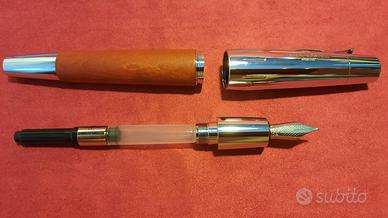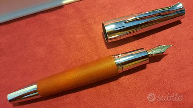 Vendo penna stilografica Faber Castell E-Motion in acciaio e legno color ciliegio, pennino M, perfetta mai utilizzata, con scatola e controscatola.