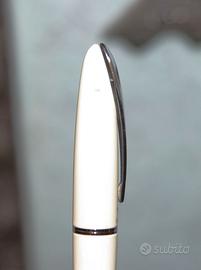 Fusto e cappuccio Bianchi, clip e vera argentati, pennino in acciaio M marcato Jaguar.
