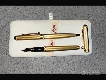 Vendo Penna stilografica Laura Biagiotti placcata oro, con decorazione a righe verticali e incisione "Laura Biagiotti" sull'anello del cappuccio, clip con sfera terminale.