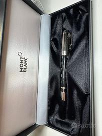 Penna stilografica Montblanc collezione Boheme Douè, realizzata in resina nera con guillochè a rete motif con finiture in platino, clip con finitura platino e onice nero sintetico pennino retraibile in Oro 18k.