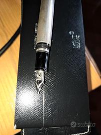 Penna stilografica Montblanc della collezione "BOHEME", realizzata in argento 925 con zaffiro blu sintetico insenirto nella clip, dimensione ridotta oltre ad un pennino rientrante .