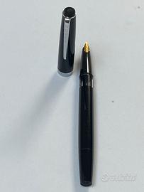 Penna Stilografica NOREX di colore nero, profili argentati, pennino dorato con scritta Norex 53, caricamento a stantuffo. Presenta dei segnetti visibili in controluce sul corpo (vedi foto). Per il resto buone condizioni come da foto allegate, no box.