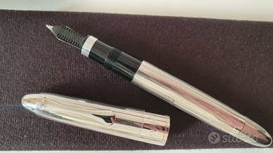 Penna Stilografica realizzata da Omas per Davidoff su base ogiva, nuova, mai inchiostrata, senza scatola. Rivestita in argento 925, pennino in oro bianco 18k 750, B (broad - tratto grande). Lunghezza 14,7 cm, diametro 1,5 cm. Non si accettano offerte al ribasso.