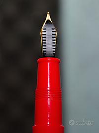Bellissima Omas Extra (557 S) con un bel vestito rosso corallo, data come oggetto pubblicitario dalla ditta farmaceutica Malesci ai propri dirigenti, pennino in acciaio placcato oro, misura M. Carica a pistone. Condizioni da concorso immacolata mai usata, neanche intinta nell'inchiostro.