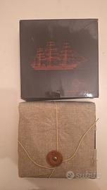 Penna stilografica Omas modello Amerigo Vespucci. Da collezione del 1989. Mai usata, completa di tutto. Fusto in radica di colore rosso scuro, dettagli di finitura in metallo dorato e l'inconfondibile decorazione a motivo greco. Incisa la data di produzione. Pennino in oro 14 kt. La tela che la accompagna viene da vele originali tesate sul Vespucci.