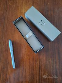 Stilografica Parker Urban classic acciaio mai usata, con una carica di inchiostro, colore argento, pennino medio, in confezione originale