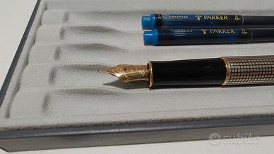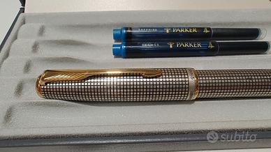 Penna stilografica Parker Sonnet in argento 925 cesellato, pennino in oro 18k, con scatola originale, come nuova, con custodia.