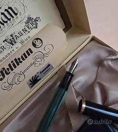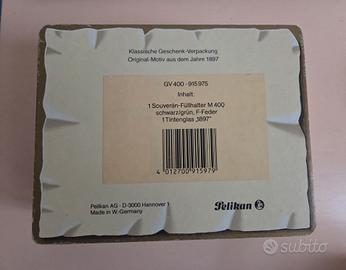 ✅️ Penna stilografica Pelikan Souverän-Füllhalter M 400 con oro 14 kt / 585 F del periodo 1982-1997 di colore nero e verde in perfette condizioni, con garanzia originale, inchiostro originale e rara confezione originale regalo. È stata solo provata una volta ma mai realmente utilizzata, è quindi in condizioni eccellenti e funziona benissimo.