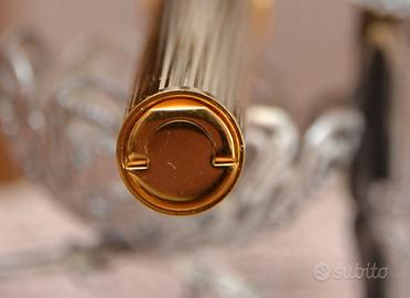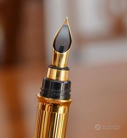 Modello laminato oro di granclasse, acquistata negli anni '90 e mai usata, pennino in oro massiccio 18 Kt. e importante laminatura da 20 micron perfetta senza alcun segno. Cè tutto documenti ed astuccio originale Per aprirla posteriormente al fusto è presente una vite come quella per caricare i famosi e prestigiosi accendini. Se siete interessati ad altre penne stilografiche e/o biro date un occhiata agli altri miei annunci.