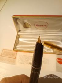 Vendo meravigliosa penna stilografica vintage Aurora modello 88P Si tratta nello specifico del modello con cappuccio laminato in oro 18k e pennino sempre in oro da 14k (come da certificato presente e visibile in foto) Questo modello nello specifico è un idei primi modelli prodotti (1958-1964) riconoscibile dal numero di serie inciso e visibile dalle foto (3265175) Meccanismo di ricarica inchiostro a pistone, perfettamente funzionante, davvero oggetto di pregio e come fosse stato acquistato in negozio in quegli anni. Corredata da confezione originale, certificato di garanzia e originalità, il tutto in condizioni NOS. Oggetto molto raro, ancora di più in queste condizioni. Posseggo un'altra penna Aurora vintage argento 925 dorato nelle medesime condizioni e corredata di tutto, confezione originale e certificato di garanzia (modello a sfera) Oggetti meravigliosi per appassionati che capiscono il valore di questi oggetti, non solo quello economico ma anche il valore storico racchiuso in questi oggetti. Non spedisco solo ritiro a mano