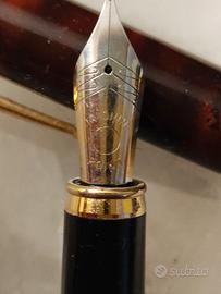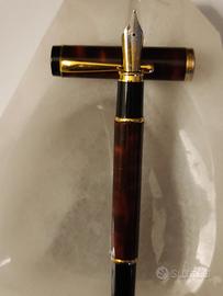 Penna Stilografica Ronson Vintage in condizioni ottime . La penna è in resina maculata marrone nero,il marchio Ronson si trova sul cappuccio e sulla parte d ' orata Pennino iridium.