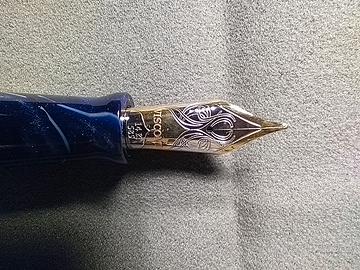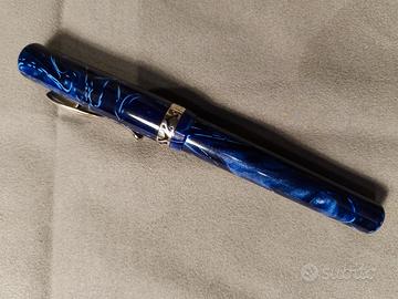 Splendida penna stilografica Visconti modello Voyager nella rara ed elegante colorazione Lapis Blue (Blue Sand). Un pezzo iconico della produzione fiorentina degli anni '90, perfetto per collezionisti o amanti della scrittura di lusso. Caratteristiche principali: Corpo: Resina acrilica blu con particolari venature perlate. Pennino: Originale Visconti in Oro 14K (585) bicolore, punta media (M), garantisce una scrittura fluida e molleggiata. Sistema di caricamento originale Condizioni: Eccellenti, lievissimi segni di utilizzo dovuti al tempo, nessuna crepa o graffio profondo. Le parti metalliche sono brillanti e prive di ossidazione. Dettagli: Clip Visconti originale e veretta decorata. La penna viene venduta senza scatola originale e documenti (formula visto e piaciuto). Un pezzo elegante, ideale per amanti della scrittura o collezionisti del marchio Visconti che desiderano un corpo penna di alta gamma ad un prezzo accessibile.
