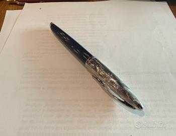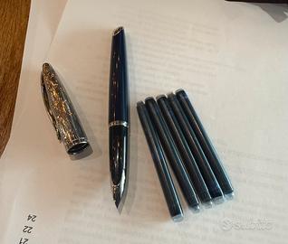 Vendo pena stilografica waterman “L’essence du Bleu”. Con pennino in oro 18 kt e cappuccio fatto a mano. Inclusi set di refill a lunga durata (5 pezzi).