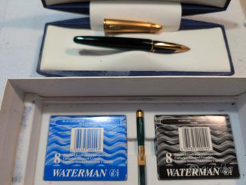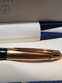 Penna stilografica Waterman Paris, modello Edson. Corpo smeraldo con cappuccio in NIB oro 18k 750, taglia F.