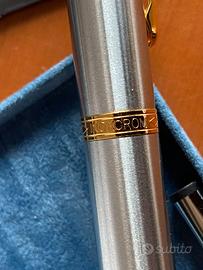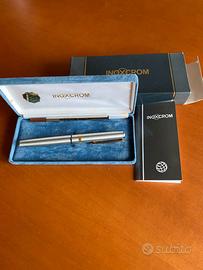 Penna vintage nuova con inserti oro placcato 23'6 Kts Inoxcrom con astuccio in velluto e foderato all'interno e scatola. Modello Wall street.