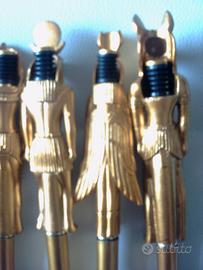 Vendo penne da collezione stile Antico Egitto,nuove e funzionanti,color oro con dettagli colorati,con meccanismo a scatto,inchiostro blu,a 8 E l'una.Ogni 2 penne acquistate,sconto 1 E.