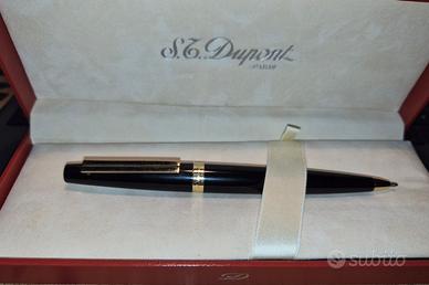Dupont S.T. penna a sfera portamine Ellipsis in resina lucida nera placcata in oro con astuccio originale rosso 1 ricarica blu e 1 portamine tutto originale 100%