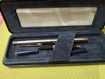 UN PORTA PENNE CON UNA PAPERMATE STILOGRAFICA PIU POMPETTA IN AGGIUNTA PER INCHIOSTRO AL POSTO DI RICARICHE + SCATOLO DI LATTA MARCA COLUMBUS CON PORTA MINE DI GROSSO CALIBRO E MINA IN PROVETTA + SCATOLO DI PLASTICA CON 1 STILO E 1 PORTAMINE IN ALLUMINIO TUTTO AL COSTO DI 80 EURO preferibile ritiro a mano