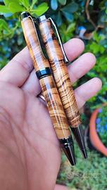 Bellissime penne lavorate a mano al tornio in legno pregiato come ulivo noce ciliegio radica di castagno terebinto carrubo pruno albicocco radica di alloro prugno resina epossidica ecc..Tutte le penne hanno il telaio interno in metallo..la refill è sostituibile ..
