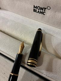 Penne Montblanc Meisterstuck stilografica nera con pennino in oro e marrone a sfera.