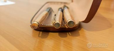 Storica Stilografica "Parker 51" vintage (anni 40/50) originale nel suo astuccio, accompagnata da penna roll on e matita usate ma in buone condizioni; pennino oro e cappuccio placcato oro per tutte e tre