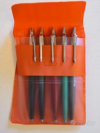 5 penne in totale, 1 Olimpic e 4 Parker due delle quali personalizzate ed una con nome inciso sulla parte superiore, tutte anni '70, non hanno astucci personalizzati, vendo in blocco, sono tutte in ottimo stato, sopra il prezzo 1 penna Parker color oro e blu con scatto rotto. Rispondete all'annuncio oppure si prega di contattare Graziano 340-4110406 dalle 10 alle 19. Si spedisce solo dopo eventuale bonifico + spese di spedizione, oppure la merce va ritirata personalmente e pagata in contanti, a Vago di Lavagno (VR) o, previo accordo nelle immediate vicinanze, max 10 Km.