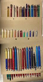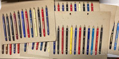 Gigantesco lotto di penne a sfera e lapis portamene pubblicitarie degli anni 50/60. Più di 800 pezzi (756 penne in vari materiali e 78 lapis portamine in alluminio), bachelite plastica metalli vari, tutte pubblicità diverse(aziende, artigiani,banche,ecc), la maggior parte di produzione Tirrenia.Per collezionisti