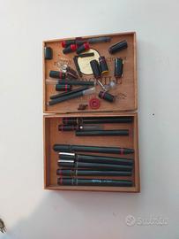 penne a china da disegno tecnico rapidograph Rotring con contenitore specifico umidificatore Rapidomat più ricambi varii per un totale di 16 penne
