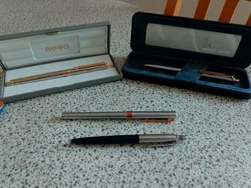 Non sono un collezionista , sto' solo svuotando casa dei miei. Dopo una breve idagine di mercato ho capito che ci sono pezzi piu' o meno importanti, le 2 penne senza scatola : "Aurora" e "Parker".Non vendo singolarmente,solo il lotto completo!!! La vendita è seguita solo dal servizio "Subito", quindi gentilmente non chiedetemi altro ,non vi saprei rispondere . Grazie
