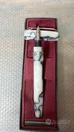Vendo penne stilografiche anni 2000 un paio con difetto . Vendo in blocco o singolarmente .(nuove perche tenute come collezione). Scrivete se interessati . Non conosco la marca . Preferirei consegna a mano . Ma se proprio spedisco . Descrizione fatta con A.I. Quindi prendetele con le pinze . Blu marmorizzato con finiture oro → Tipica Sheaffer Prelude (o simile della serie Fashion/Connaisseur). Corpo in resina marmorizzata, clip e anelli dorati. • Verde con corpo rigato e cappuccio oro → Sheaffer della linea Agio o Prelude in verde (o Javelin). • Bianca con corpo liscio e finiture oro → Sheaffer Prelude bianca (versione molto comune negli anni 2000). • Bordeaux/marrone scuro con finiture oro → Ancora Sheaffer Prelude in colore bordeaux. Queste erano le classiche “penne da regalo” dell’epoca, vendute spesso in confezione singola o set. • Marrone con sezione legno + cappuccio metallo → Stile “wood” o “fashion”, probabilmente Sheaffer o marca simile (tipo Cross o generica). • Argento con pattern ondulato (guilloché) → Sheaffer o Parker-style, finitura metallica lavorata. • Bianco/grigio marmorizzato con clip decorata → Ancora linea marmorizzata Sheaffer. • Marrone/oro con effetto fiamma (tortoise) → Resina effetto tartaruga, tipica di alcune edizioni limitate o fashion Sheaffer. • Arancione chiaro con venature → Resina marmorizzata chiara, stile “fashion” degli anni 2000.
