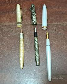 Penne stilografiche originali d'epoca varie alcune incomplete Prezzi: penna inizio '900 con ciuffo in stoffa € 50 foto con tre penne antiche stilografiche € 30 l'una pennini in vetro antichi € 20 l'uno foto con molte penne antiche € 10 l'una penne antiche per calligrafia nere € 15 l'una