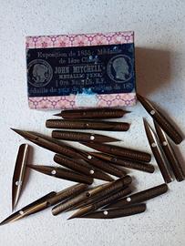 vendo antica scatoletta con 25 pennini allungati in bronzo