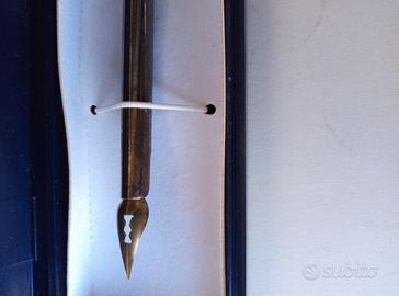 Pennino da inchiostro in argento 925, epoca Liberty (1920 /1930), cesellato, autentico, può essere personalizzato incidendo le proprie iniziali nello spazio ovale. Oggetto da scrittoio, da abbinare ad un calamaio antico (già pubblicato su Subito). Idea regalo! Per info 340 6203846 o WhatsApp.
