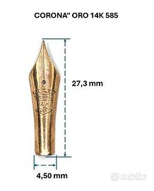 Pennino vintage originale in oro massiccio 14 carati (585/1000), Marcato con logo a Corona e punzone “14K 585”.