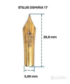 Pennino vintage originale marca STILUS, marcato “OSMIRIA 17”, produzione italiana anni ’20–’30, appartenente alla tradizione dei pennini tecnici e stilografici in lega ad alta resistenza.