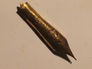 Pennino x penna stilografica ANCORA DUPLEX.In oro 14 k. Marcato G.Z 16. Piccola mancanza di metallo nella parte posteriore del pennino ( che non inficia minimamente sul funzionamento) . I rebbi sono perfettamente allineati . Vendo a collezionista come parte di ricambio a 45 euro. N.T.