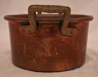 Pentola d'epoca in rame stagnato di piccole dimensioni. Ha un diametro di cm 13,5 ed é alta cm 7.