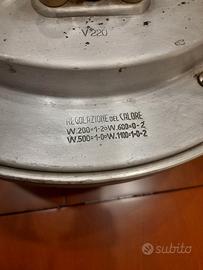 Ora non funziona. Per ripararla andrebbe sostituita una delle rondella in ceramica che si e' danneggiata. Andrenbe inoltre curata l'isolazione del cablaggio originale. Tutto il resto e' integro. Diametro esterno 37 cm e altezza fino al manico 27 cm.