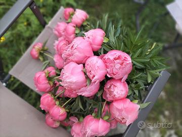 Rizomi di peonie in eccesso, 2-4 occhi, delle due splendide varietà color corallo vivo, Coral Sharm e Pink Hawaian Coral, perfette per fare mazzi bellissimi da regalare o portare in casa. Formano grande ceppo velocemente. Decidui, posizione pieno sole.
