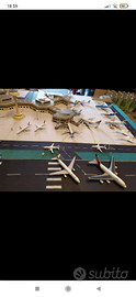 Aereoporto internazionale con collezione modelli di aereo da trasporto di diverse nazionalità e compagnia completa di 3 fascicoli rilegati che raccontano la storia dell' aviazione commerciale di ieri e di oggi