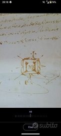 Vendo rara pergamena originale del 1622 riguardante un mandato di Don Ferrante II Gonzaga (Principe di Molfetta e Conte di Guastalla) per la gestione di un Arrendamento del Regno di Napoli. Il documento è completo di firme autografe di importanti funzionari della Regia Camera della Sommaria, tra cui il Regio Attuario Simon de Joanne e Gian Angelo Cordasco. Pezzo di alto valore storico, integro e perfettamente leggibile (inchiostro ferro-gallico). Ideale per collezionisti di storia meridionale, autografi o araldica Gonzaga. Disponibile per visione o spedizione tracciata."*