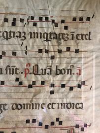 Antica pergamena . Pagina di musica sacra scritta a mano e montata su cristallo davanti e dietro. Misura cm. 70x cm.55. Oggetto particolarmente bello. Acquistato tantissimi anni fa da un antiquario in Bergamo. Consegna a mano.