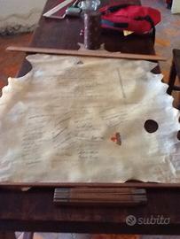 Pergamena rinvenuta nel COVO di Milano del giuramento di rinnovo fedeltà al Duce dei famigliari dei caduti durante la Rivoluzione di Ottobre (Marcia su Roma) . Documento con firme originali arrotolato nella sua custodia in perfetto stato di conservazione. Documento UNICO