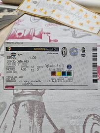 auguri della Juventus autografato dai calciatori su pergamena e biglietto stadio